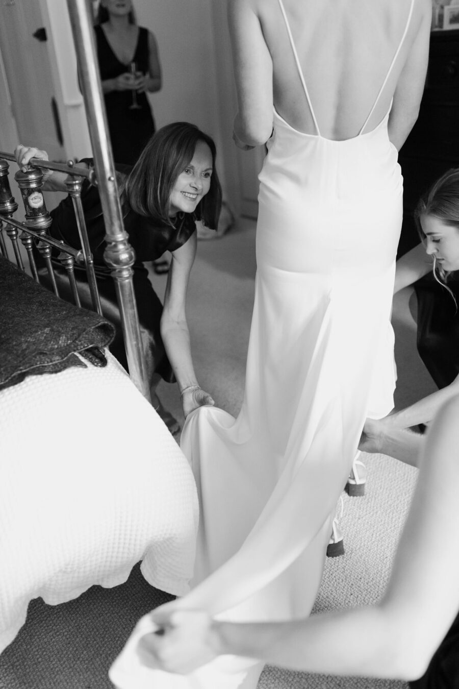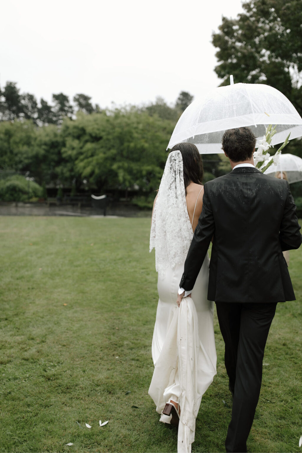 Ella – surrounded by school friends and soft chaos. Ben – back at the house that raised him, walls remembering more than anyone said out loud. Ten years since uni. And now, this. The road closed. Accident somewhere between love and logistics. A helicopter instead. Naturally. Wet vows. Quick steps. Wine poured heavy. Travel stories stretched longer, louder. Familiar tales dressed up for an audience. The rain kept coming. No one really minded. A masterclass in surrender.