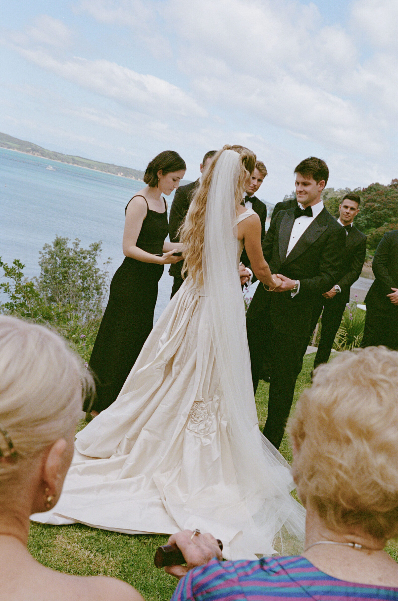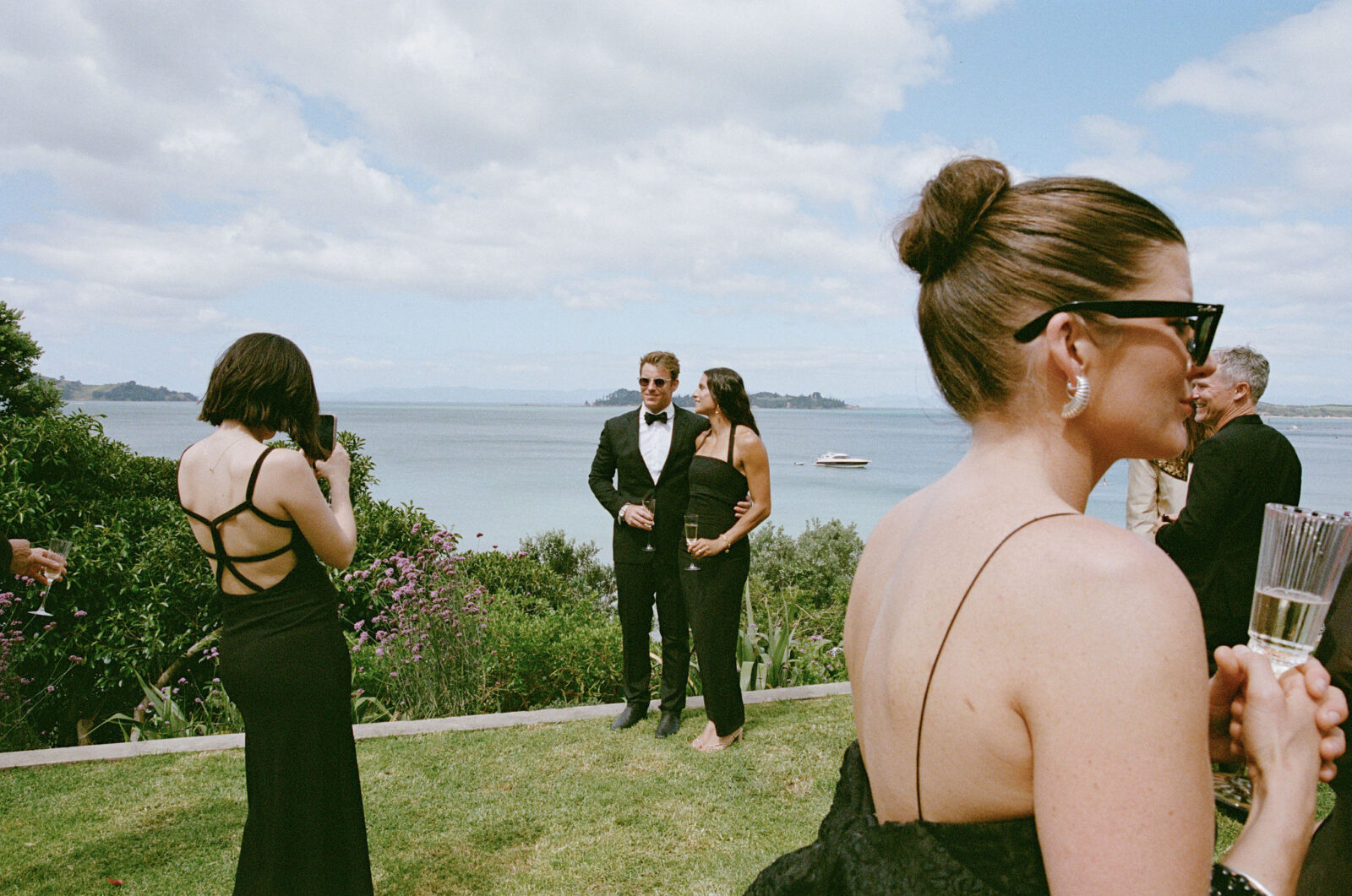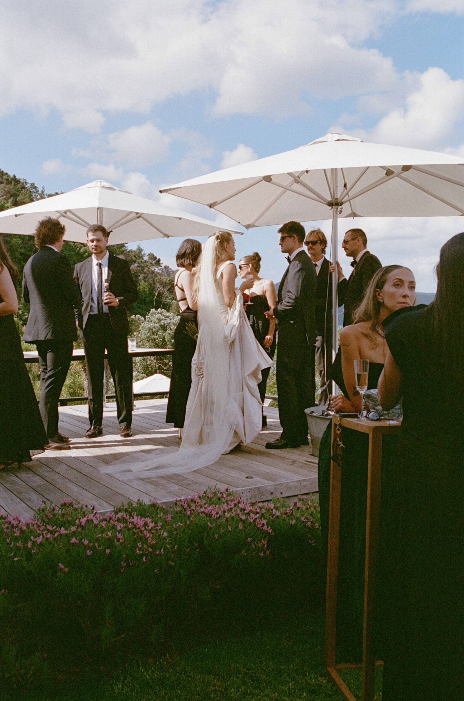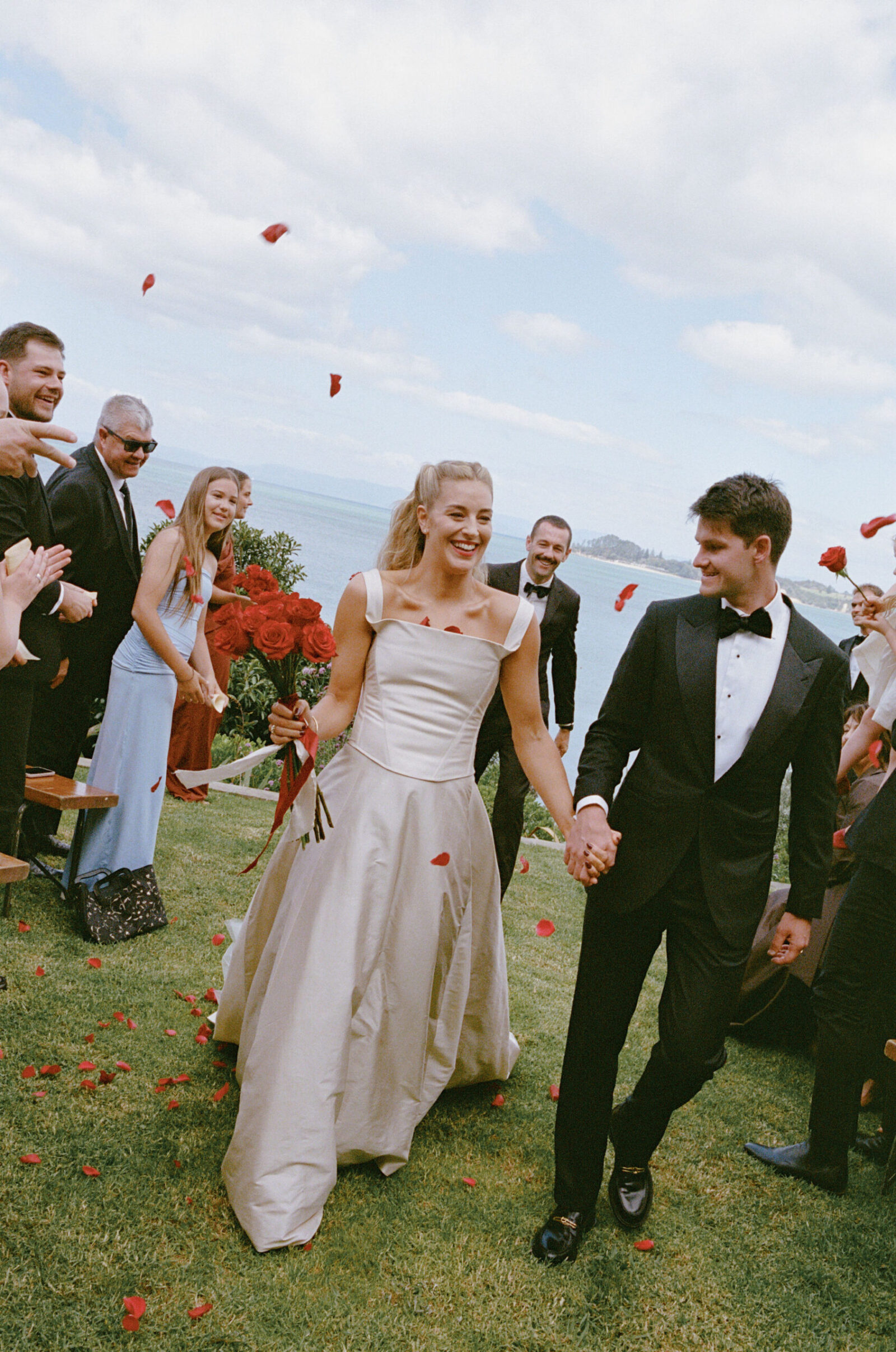 They met the old-fashioned way. Mutual friends. Real life. Practically prehistoric. The wedding – a hilltop in Havelock North. Private property, but familiar faces everywhere. A reunion disguised as a ceremony: past couples, parents I’d met before, déjà vu running down the guest list. Sharp suits. Sharper humour. The kind of banter that only gets louder as the bottles get lighter. By sundown, the edges started to blur – you’ll feel it in the photos. That slow dissolving of day into night. And of course, the wine found the one man in white. As it always does.