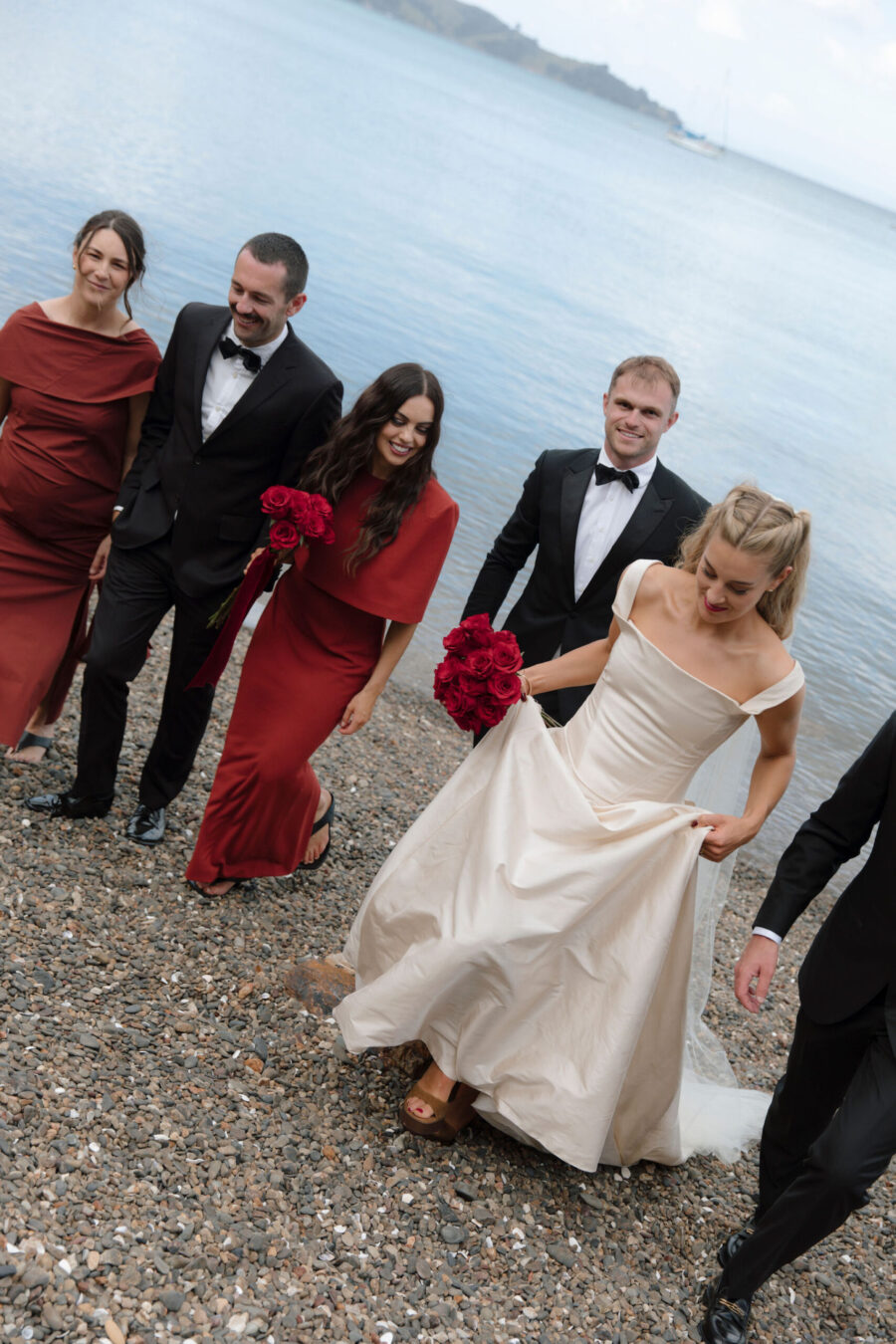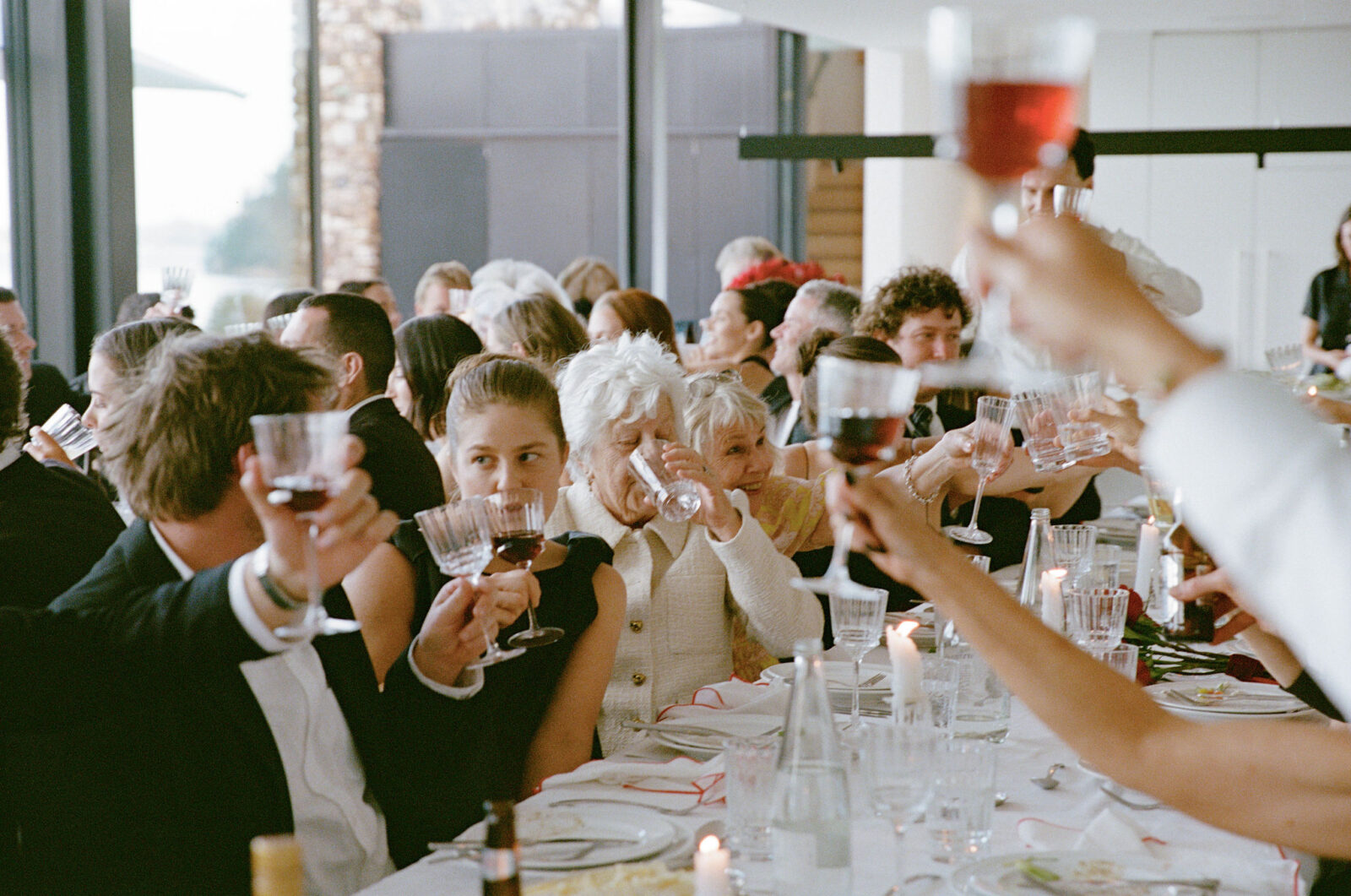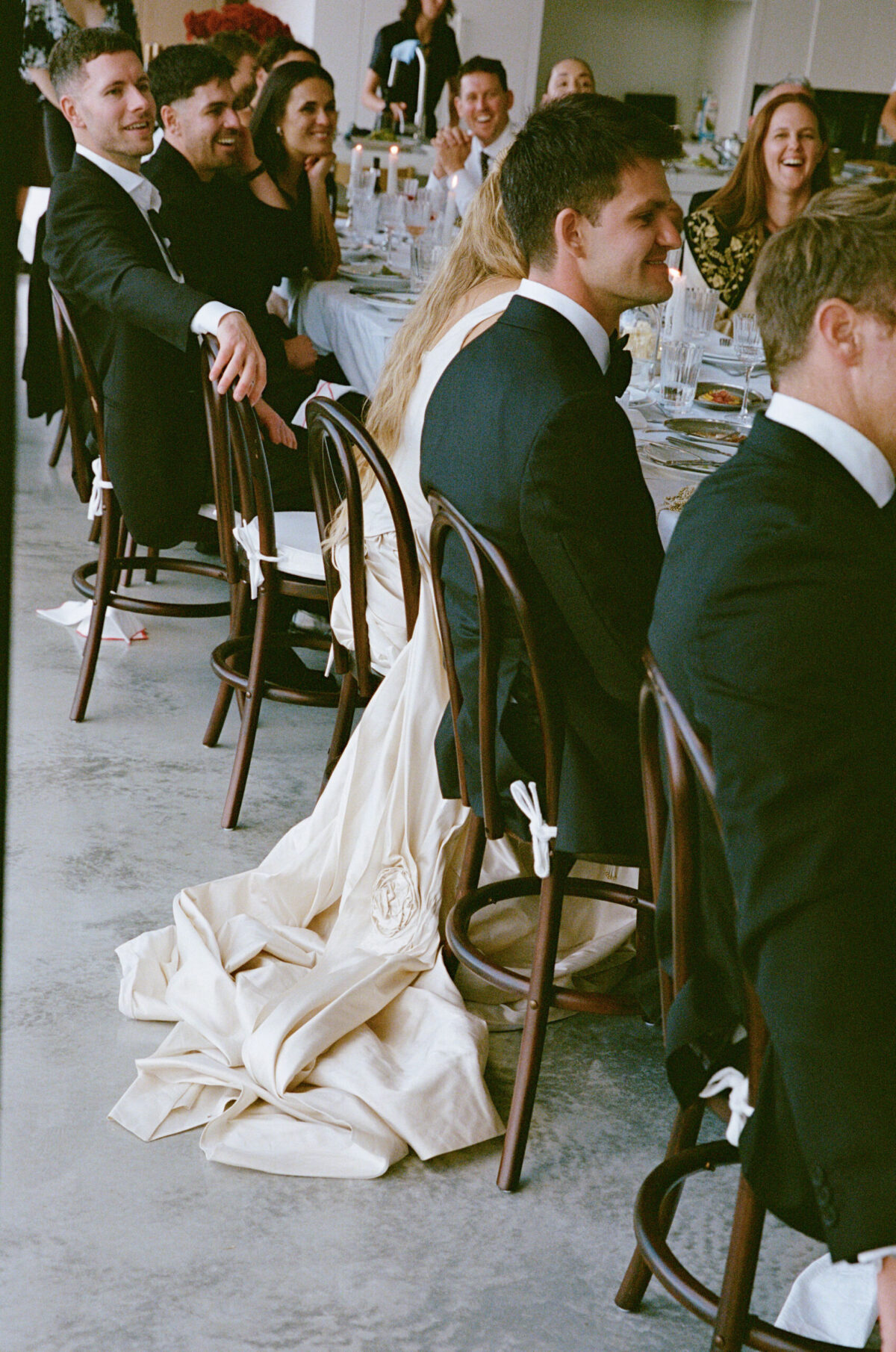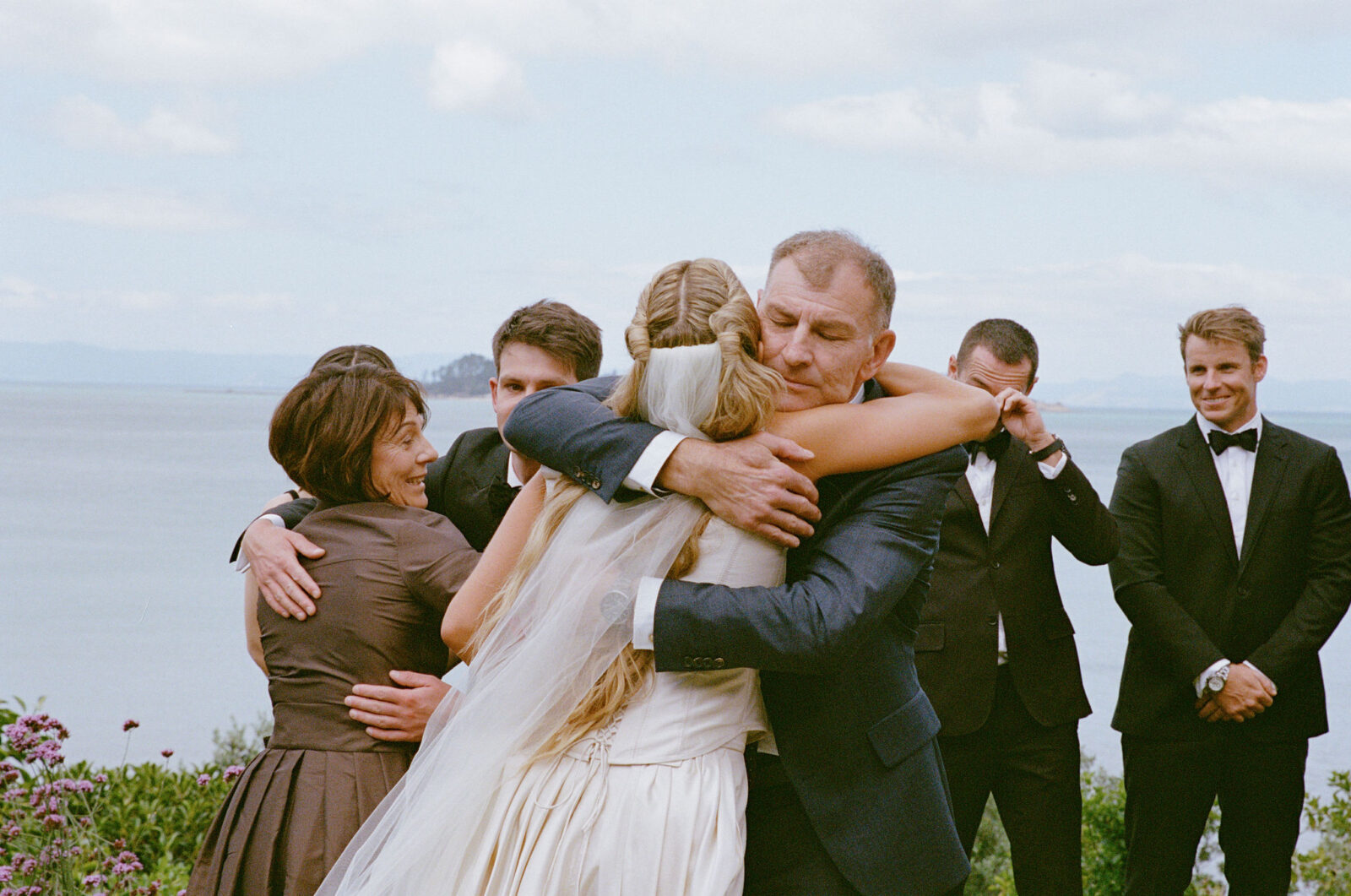 They met the old-fashioned way. Mutual friends. Real life. Practically prehistoric. The wedding – a hilltop in Havelock North. Private property, but familiar faces everywhere. A reunion disguised as a ceremony: past couples, parents I’d met before, déjà vu running down the guest list. Sharp suits. Sharper humour. The kind of banter that only gets louder as the bottles get lighter. By sundown, the edges started to blur – you’ll feel it in the photos. That slow dissolving of day into night. And of course, the wine found the one man in white. As it always does.